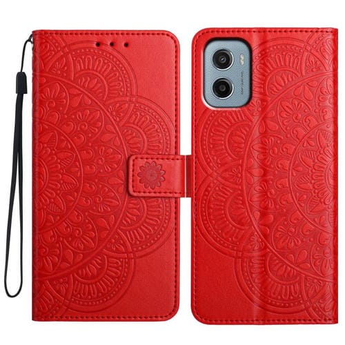 Funda de Piel con Relieve Floral para Motorola Moto E15 (Roja)