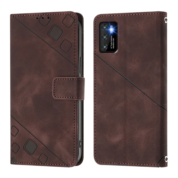 Funda de Piel con Relieve para Teléfono Cubot P50 (Marrón)