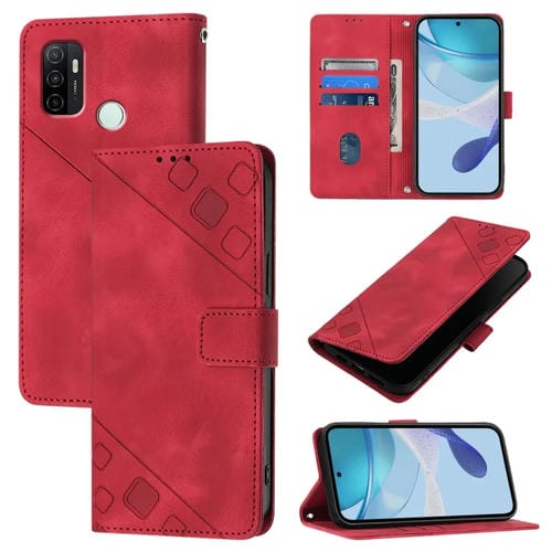 Funda de Piel con Relieve para Teléfono Oppo A32 2020 4G/A53 2020 4G (Roja)