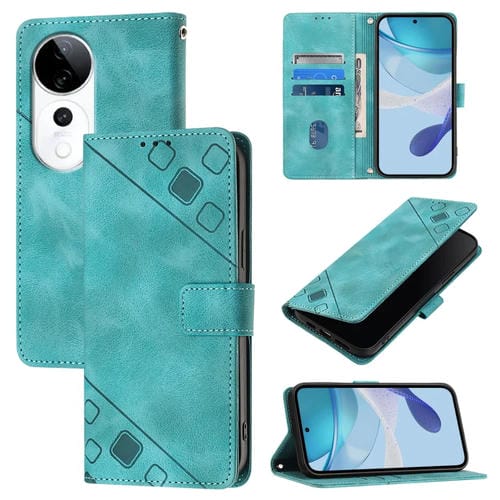 Funda de Piel con Relieve para Teléfono Vivo S19 Pro (Verde)