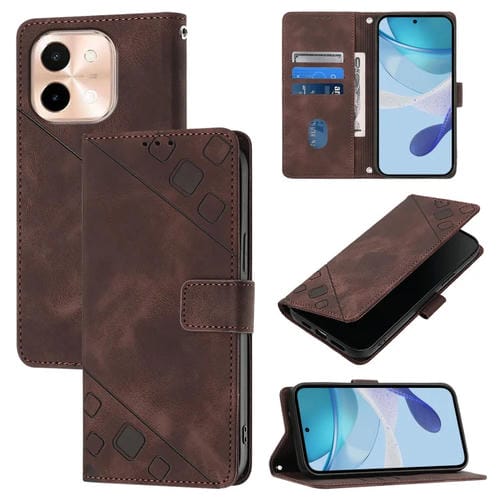 Funda de Piel con Relieve para Teléfono Vivo Y28 4G (Marrón)