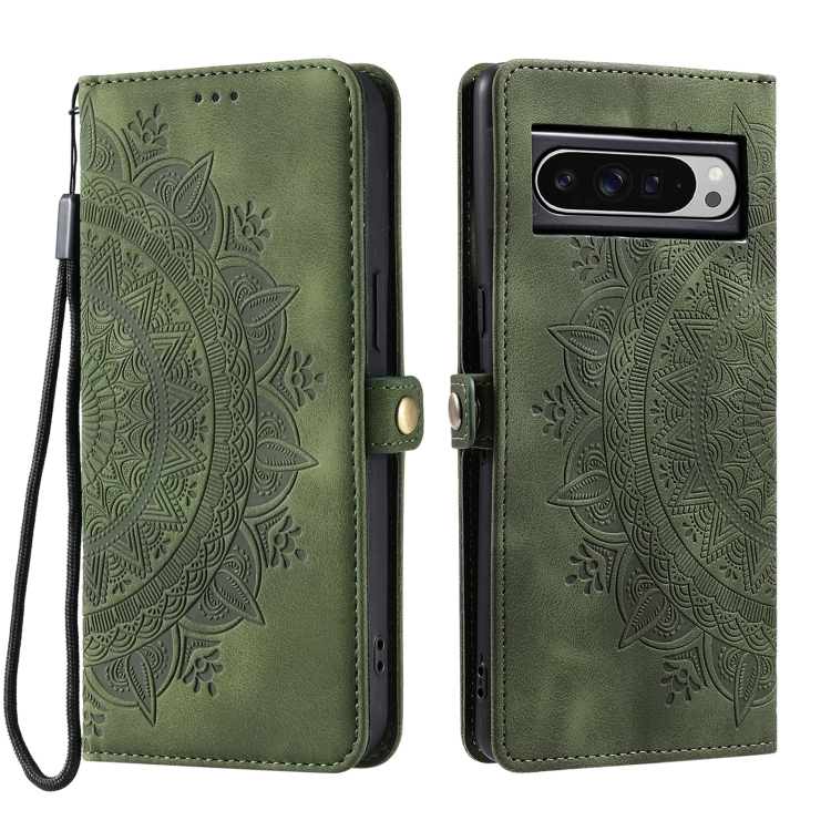 Funda de Piel con Relieve Totem para Google Pixel 9 Pro XL (Verde Oscuro)