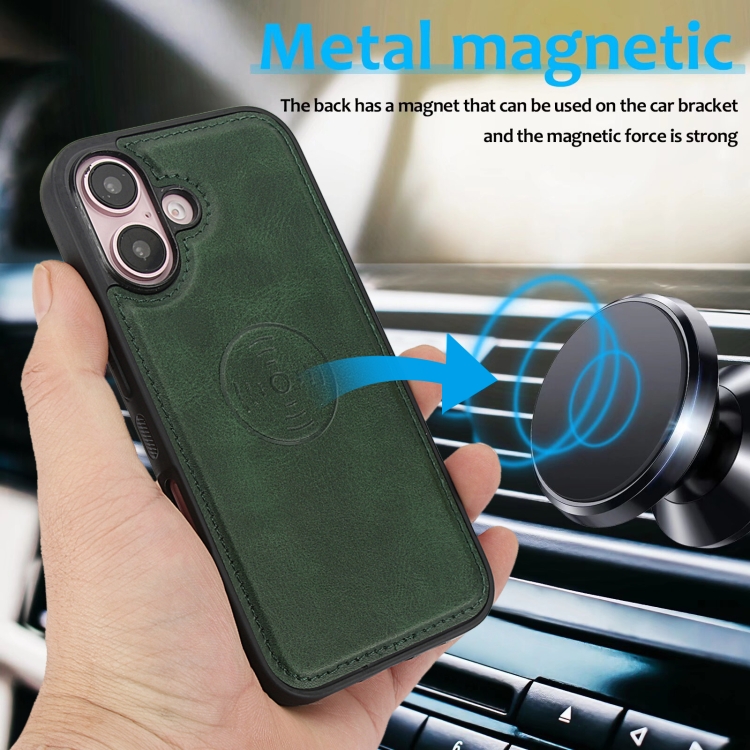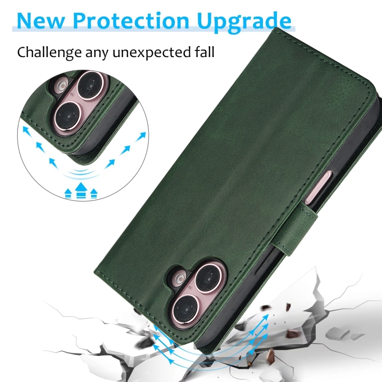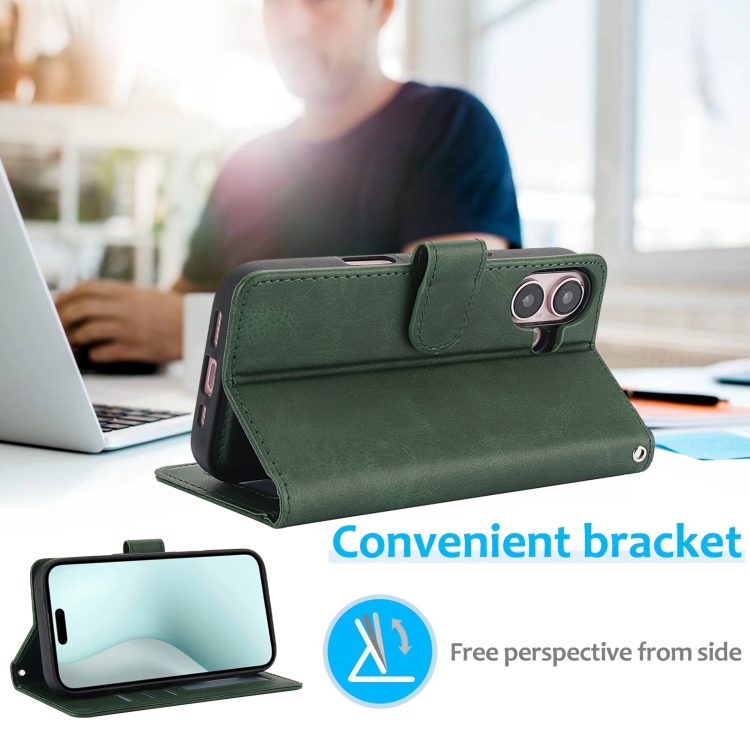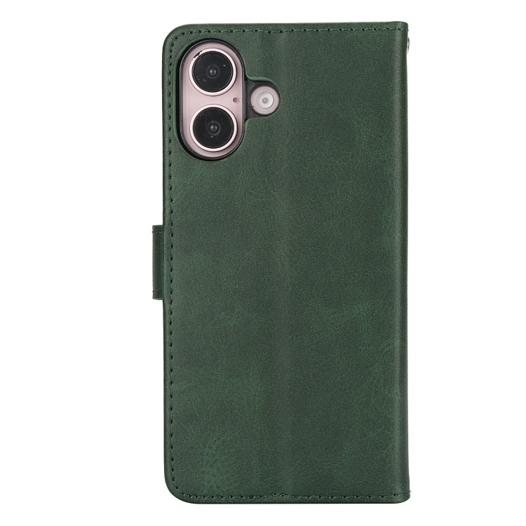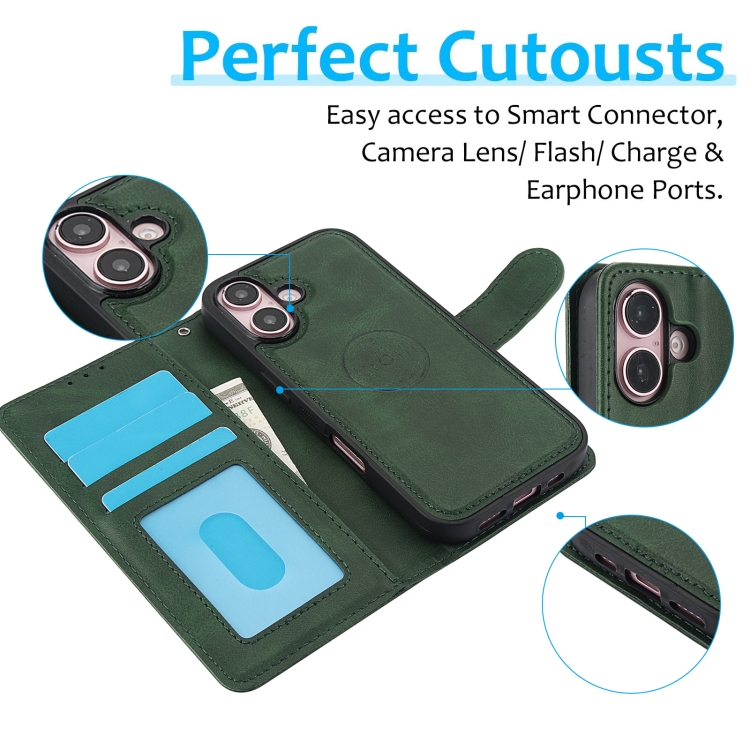 Funda de Piel Textura Becerro 2 En 1 con Tapa Trasera Magnética Desmontable para iPhone 16 (Verde)