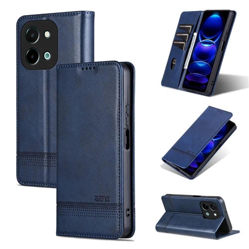 Funda de Piel con Textura de Becerro Magnética Azns para Vivo Y28 4G (Azul Oscuro)