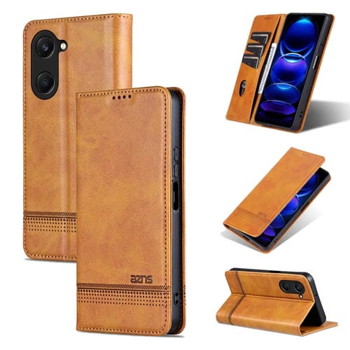 Funda de Piel con Textura de Becerro Magnética Azns para Vivo Y37/Y37M 5G/Y36T 5G (Marrón Claro)