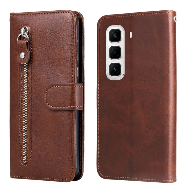Funda de Piel Textura de Becerro con Cremallera para Infinix Hot 50 Pro+ 4G (Marrón)
