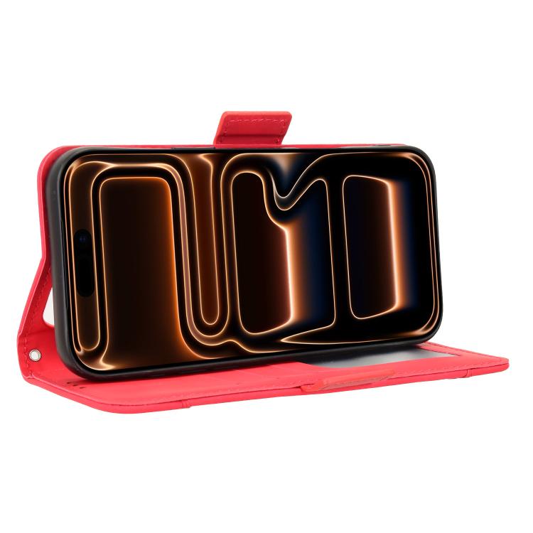 Funda de piel con textura de becerro y ranuras para tarjetas para iPhone 17 Pro Max (roja)