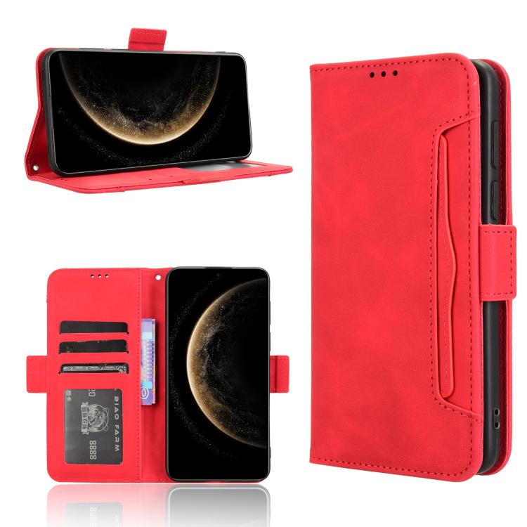 Funda de Piel Becerro para Huawei Mate 70 con Ranuras para Tarjetas (Rojo)