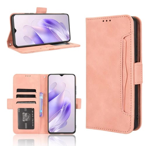 Funda de Piel con Textura de Becerro y Ranuras para Tarjetas para Oukitel C37 (Rosa)