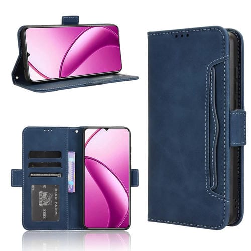 Funda de Piel con Textura de Becerro y Ranuras para Tarjetas para Oukitel C53 (Azul)