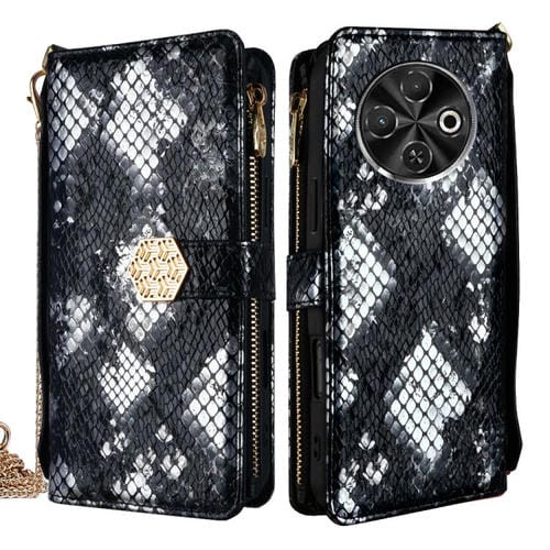 Funda de Piel con Textura de Serpiente para Tecno Spark 30C 4G (Negra)
