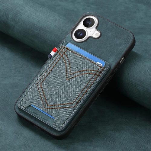 Funda de piel con textura vaquera para iPhone 17 con ranura para tarjetas (verde)