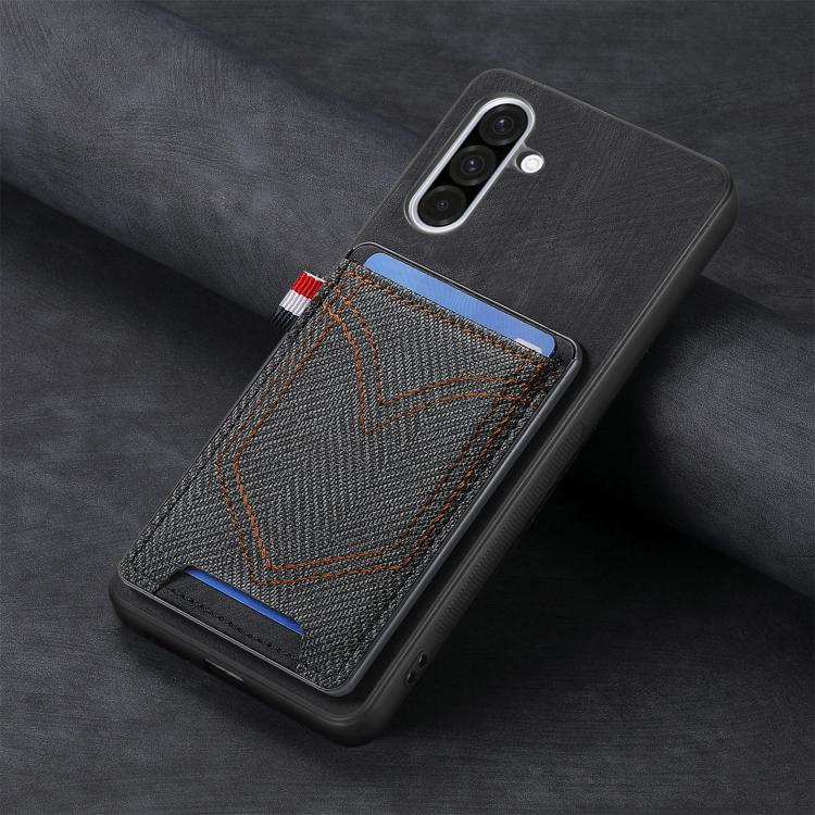 Funda para Samsung Galaxy A36 5G Piel Textura Vaquera Ranura para Tarjetas (Negro)