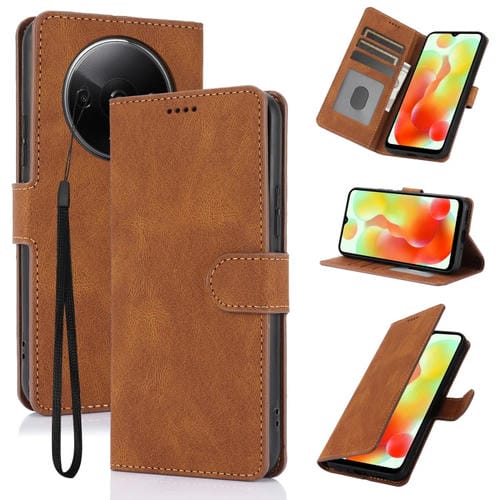 Funda de Piel de Becerro con Textura de Fantasía Global para Redmi A3 4G (Marrón)