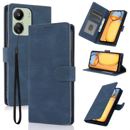 Funda de Piel de Becerro con Textura de Piel de Becerro para Xiaomi Poco C65 Global Fantasy (Azul)