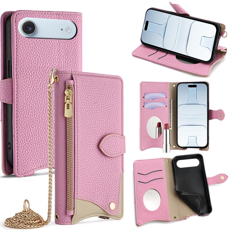Funda de piel de lichi con diseño de cola de pez y cadena cruzada para iPhone Air (rosa)