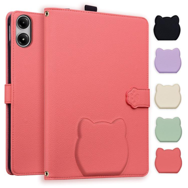 Funda de piel de lichi con tacto de gato para Xiaomi Redmi Pad Pro/Poco Pad (rojo sandía)