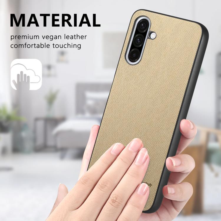 Funda de Piel de Sarga con Parte Trasera de Cuero para Samsung Galaxy A16 (Caqui)
