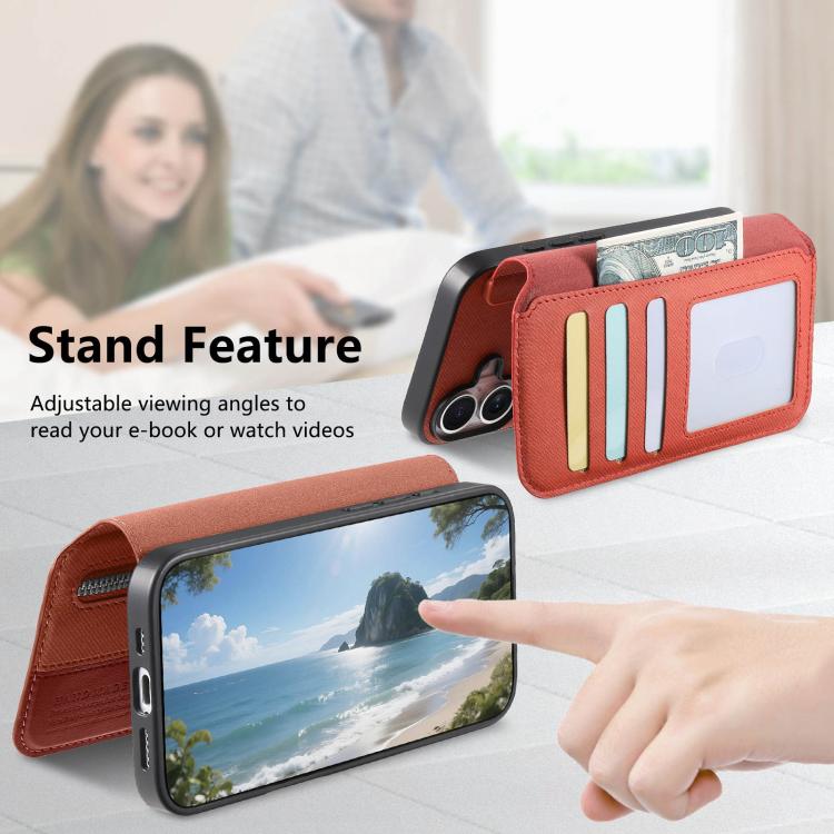 Funda de piel para iPhone 17 Pro, de tela de sarga, con MagSafe, RFID, antirrobo y cremallera (naranja).