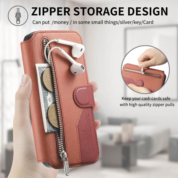 2. Zipper Wallet Function: The leather case is equipped with zipper wallet and card slots for placing cards and a small amount of cash.