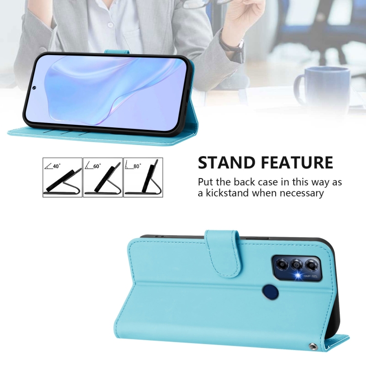 Funda de Piel Sintética con Cordón para Motorola Moto G Play 2022 (Azul Cielo)
