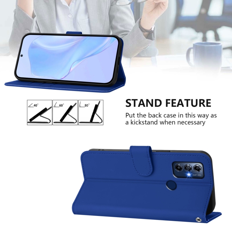 Funda de Piel Sintética con Cordón para Motorola Moto G Play 2022 (Azul Oscuro)