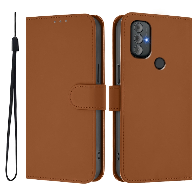 Funda de Piel Sintética con Cordón para Motorola Moto G Power 2022 (Marrón)