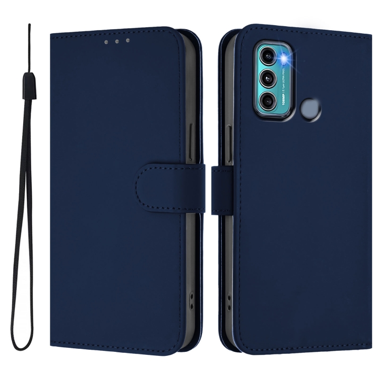 Funda de Piel Sintética con Cordón para Motorola Moto G60/G40 Fusion (Azul Marino)