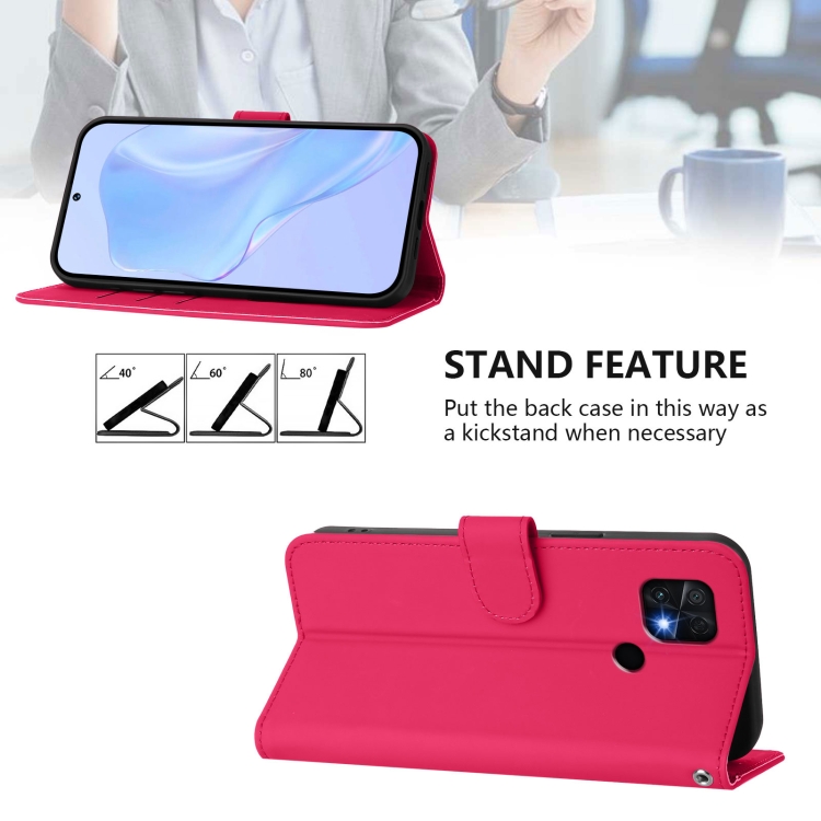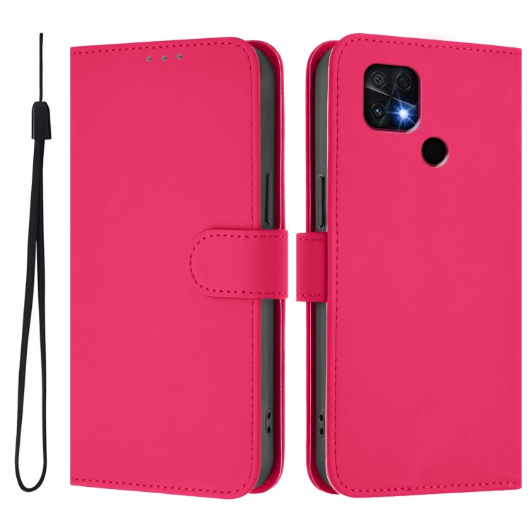 Funda de Piel Sintética con Cordón para Redmi 10C (Rosa y Rojo)