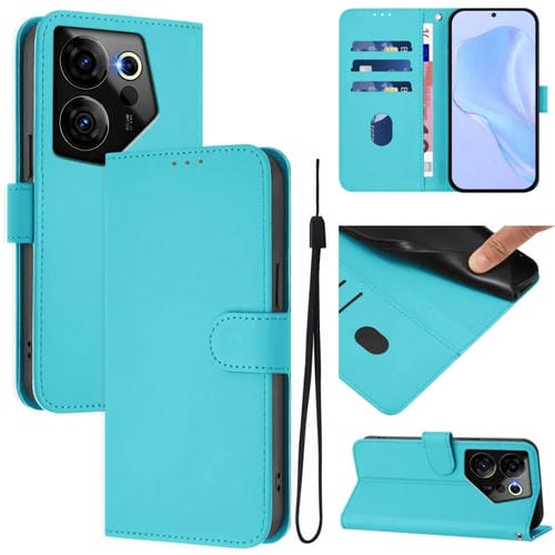 Funda de Piel con Textura y Cordón para Tecno Camon 20 Premier 5G (Azul Lago)