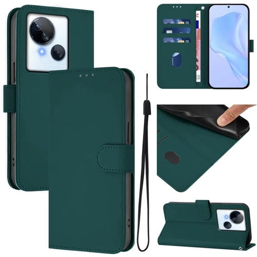 Funda de Piel para Tecno Spark 10 5G con Textura Lisa y Cordón (Verde Oscuro)