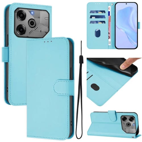 Funda de Piel con Textura y Cordón para Tecno Spark 6 Go/Go 2021 (Azul Cielo)