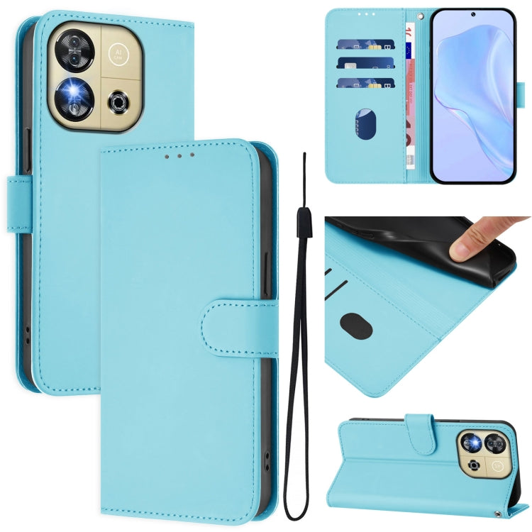 Funda de Piel Sintética con Cordón para Teléfono Oukitel C57S (Azul Cielo)