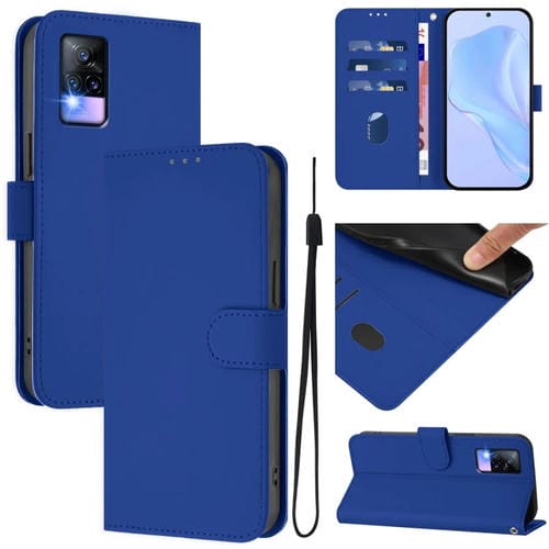 Funda de Piel Sintética con Cordón para Teléfono Vivo V20/V21E 4G/Y73 2021 (Azul Oscuro)
