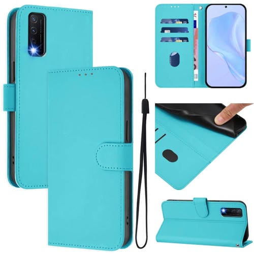 Funda de Piel Sintética con Cordón para Teléfono Vivo Y20 / Y20I / Y20S / Y11S (Azul Lago)