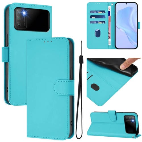 Funda de Piel Sintética con Cordón para Teléfono Xiaomi Poco M3 (Azul Lago)
