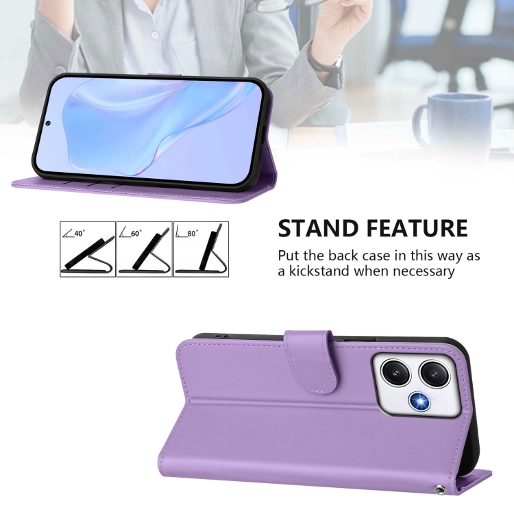 Funda de Piel Sintética con Cordón para Xiaomi Poco M6 Pro 5G (Morado Lavanda)