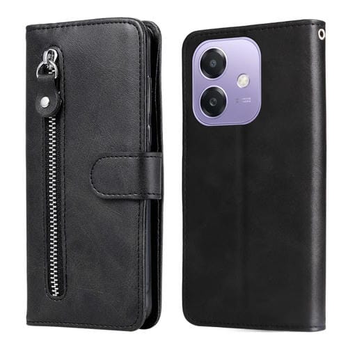 Funda de Piel Sintética con Cremallera y Textura de Becerro para Oppo A3X 4G/A3X 5G (Negra)
