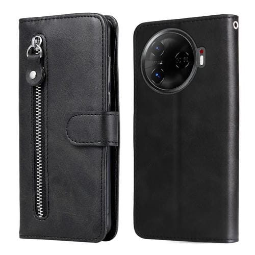 Funda de Piel Sintética con Cremallera para Tecno Camon 30 Pro (Negra)