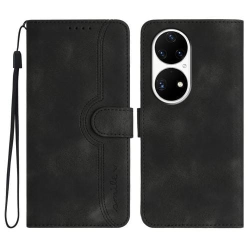Funda de Piel Sintética Huawei P50 Pro con Diseño de Corazón (Negra)