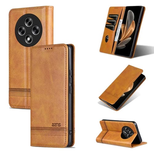 Funda de Piel Sintética con Tapa Magnética para Oppo Reno12 F 4G Azns (Marrón Claro)