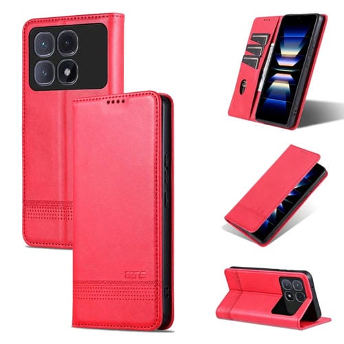 Funda de Piel Sintética con Tapa Magnética para Redmi K70 Ultra Azns (Rojo)