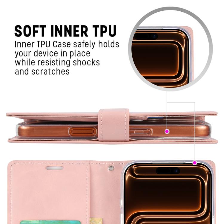 Funda de piel texturizada Crazy Horse GOOSPERY BLUE MOON para iPhone 17 Pro (Oro rosa)