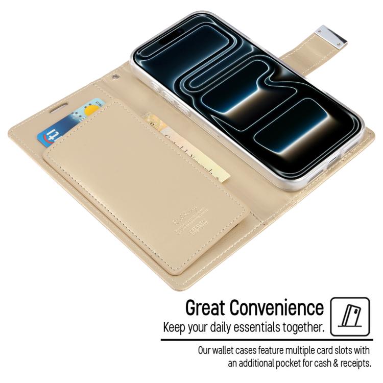 Funda de piel texturizada Crazy Horse GOOSPERY RICH DIARY para iPhone 17 Pro Max (Dorada)