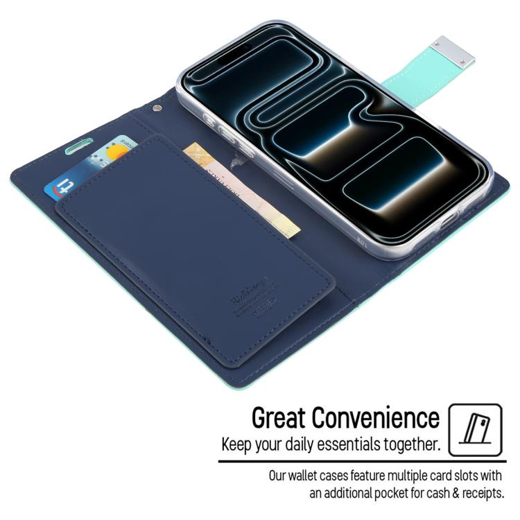 Funda de piel texturizada Crazy Horse GOOSPERY RICH DIARY para iPhone 17 Pro (Verde menta)