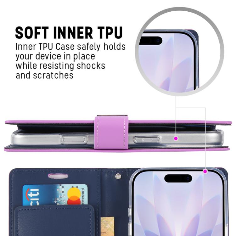 Funda de piel texturizada Crazy Horse para iPhone 17 GOOSPERY RICH DIARY (morada)