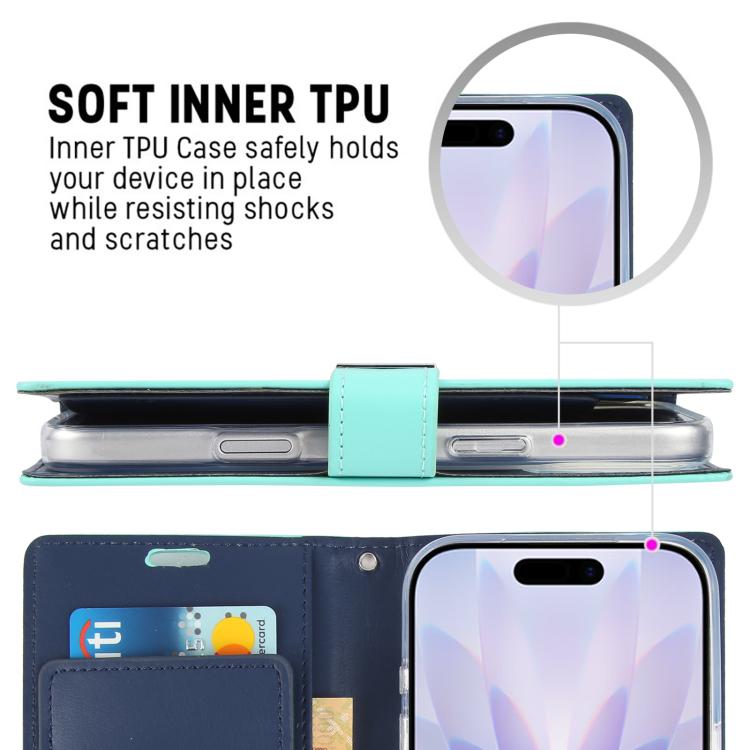Funda de piel texturizada Crazy Horse para iPhone 17 GOOSPERY RICH DIARY (Verde menta)