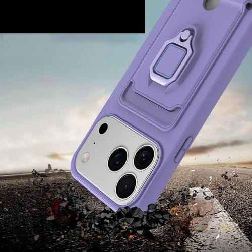 Funda de silicona con soporte magnético para tarjetas y cordón para iPhone 17 (morado claro)