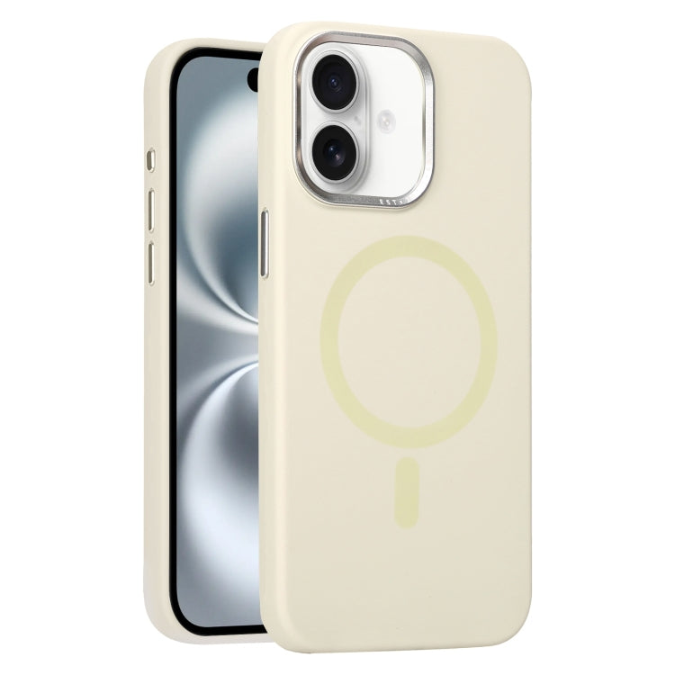 Funda de Silicona Líquida con Marco de Lente de Metal Magsafe para iPhone 16 (Blanco Antiguo)