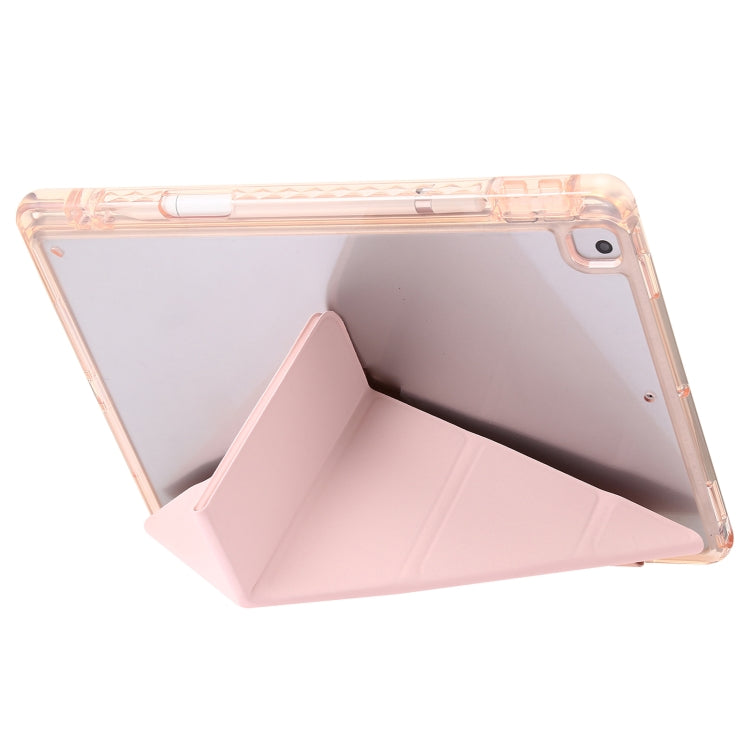 Funda de Tableta Cuero con Deformación Acrílica Transparente para iPad 10.2 2019/2020/2021 Pro 10.5 2017 Air 10.5 2019 (Rosa)